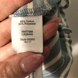 Women's Madewell Striped Melody Off the Shoulder Top Size Medium. Blue Striped Top with Tie Waist. Made of Cotton & Polyester. Style G5992. Gently Used.