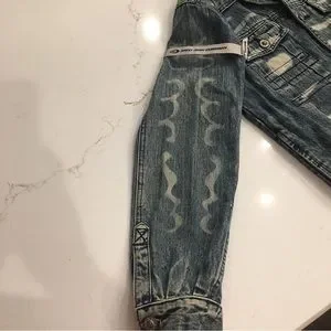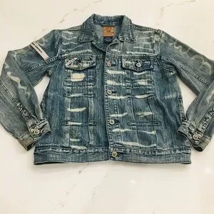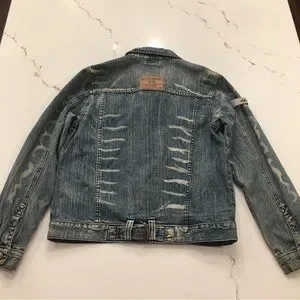 Vintage 2000 Paco Jeans Med Wash Mixed Distressed Denim Jacket Mens Size Small.