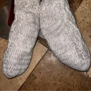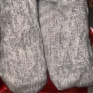 Cozy Gray/Cream Lined Slip On House/Lounge Slippers/Socks - Very Dainty Sequins throughout - Knitted Texture - Super Cute and Cozy - Grip on Sole - One Size Fits Most - Brand New