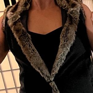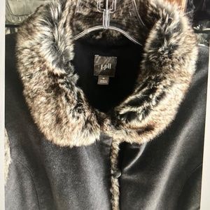 Beautiful J Jill vest that has never been worn. Gray wool fabric with full lining. The faux fur extends around the collar, and edges and bottom of the vest. It will keep you quite warm on chilly days!