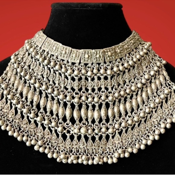 In my world travels I have acquired treasures from throughout, this incredible piece from Oman. Look at photos for gorgeous details, measurements and for your decision making. Stunning on bare skin or over a turtleneck. Add 2 or more listings to your bundle & I will offer you a kind discount.
