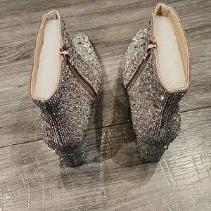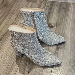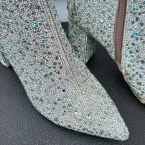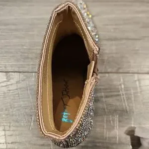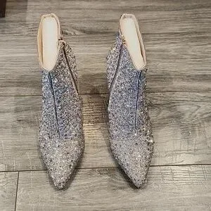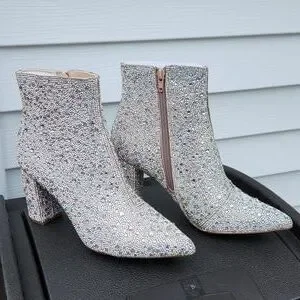 EUC Betsy Johnson Glass stone upper Sequins 3 1/2" heeled Boots sz 8.5M