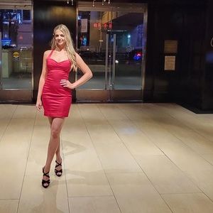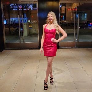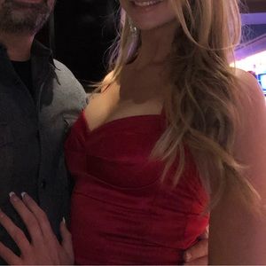 Bebe RED HOT CHILI PEPPER Bustier bodice zipper satin sexy Valentine dress Vegas