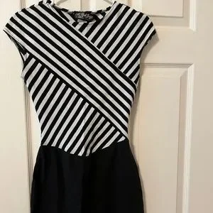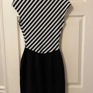 Vintage all that jazz black/white stripe dress. Form fitting. Cotton, Lycra. Vintage condition, free of stains and rips.