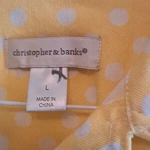 Christopher & banks jean jacket. 3/4 length sleeves. yellow and white polka dots.size L