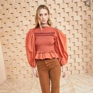 Ulla Johnson Amelia Smocked Puff Sleeve Poplin Blouse in Clay