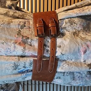 **SOLD** wide saddle hide leather belt, to fit 32-35in waist 12-14 brass buckles