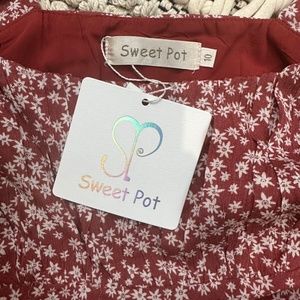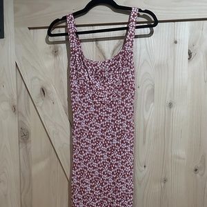 Red print dress.