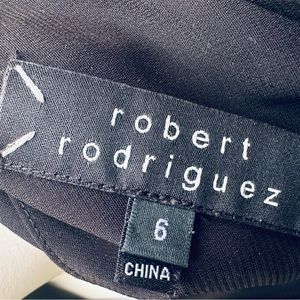 Robert Rodrigues. Size 6. Will accommodate up to 36 inch bust, but there is no stretch.