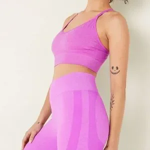Brand new with tags! Victoria's Secret PINK seamless high-waist full length workout tights in purple 'house party marl' color, size medium. Sweat-wicking, 4-way stretch, breathable, 26" inseam and interior phone pocket at back waistband.