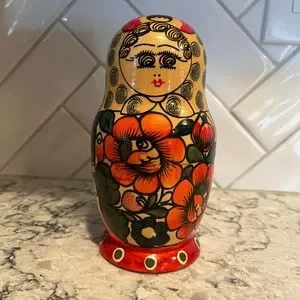 The set is of five dolls that measure a little over seven inches tall. I’m it sure where the come from as there are no markings stating where they are from. There is however a date of what I think is the date they were painted. Please inspect the photos before purchasing.