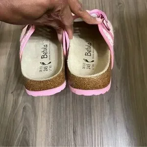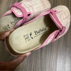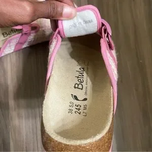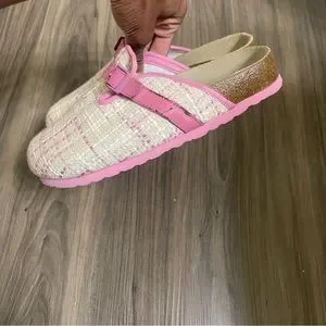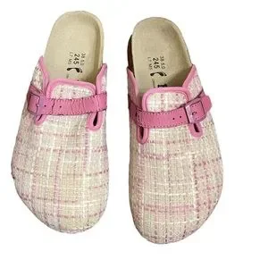 - Size 7 pink Birkenstock, Betula Woven Plaid Clogs