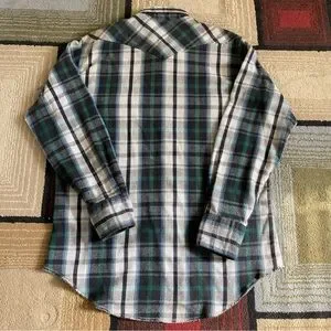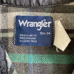 Vintage Wrangler Plaid Heavy Flannel Pearl Snap X-Long Tails Shirt Mens 16.5/34