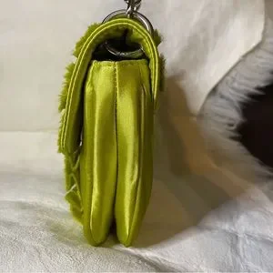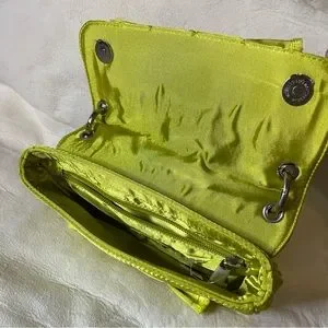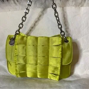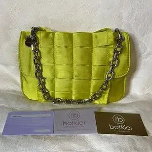 NWT Botkier Chartreuse Sateen Chain Quilt Flap Small Shoulder Bag 9”x 2” x 6”Y2K