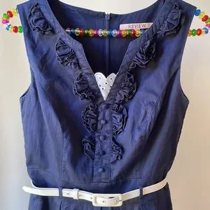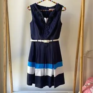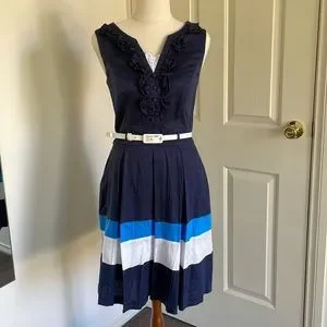 🌷2 for $20🌷 REVIEW navy striped day dress with white belt