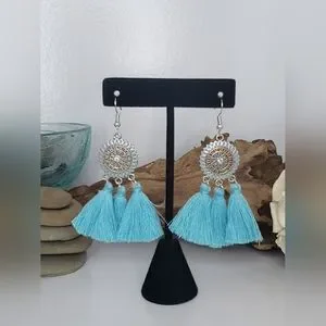 NWOT Boho Turquoise Tassel Earrings, 3in L