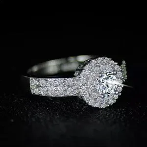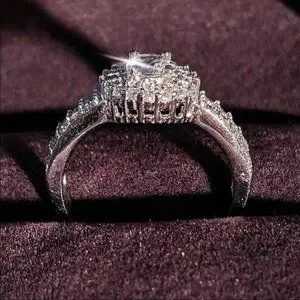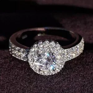 NEW 925 STERLING SILVER DIAMOND HALO RING, CUTE RING, SHINY RING.