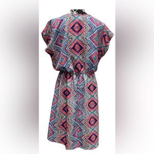 NWOT Just Be Lightweight Summer Dress with a Bright Aztec Print. Short sleeve, elastic waste, above knee dress, versatile dress for casual Fridays at work that can take you right into date night!