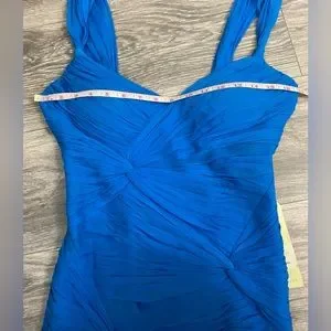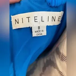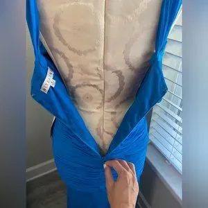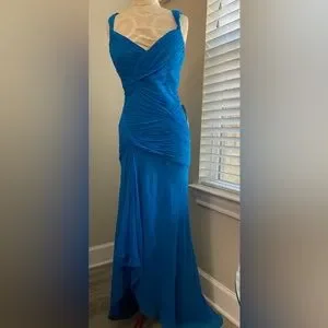 NWT, Designer 100% Silk Chiffon Blue Hi Lo Hem Evening Gown Dress, Size 8