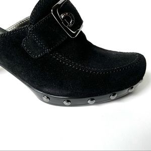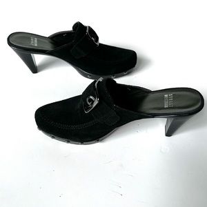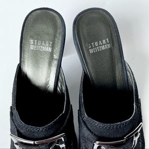 Stuart Weitzman Double Agent Black Sport/Suede studded mule clogs. Floor model purchased at Bloomingdale’s.