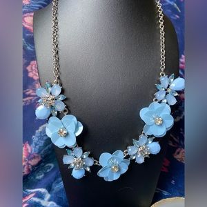Blue Floral and Rhinestone Silvertone necklace