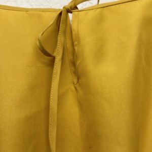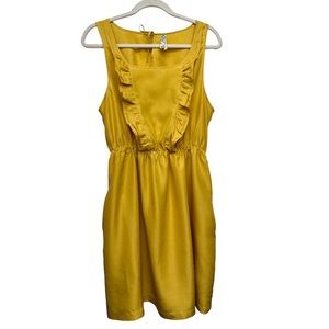 Anthropologie Maeve 100% Silk Ruffle Dress Mustard Yellow Size Large