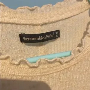 Abercrombie cream/tan sweater top ~ full length sleeves, slight crop, lettuce edge, thin sweater material, fitted, good as new condition