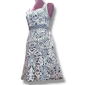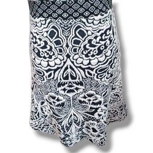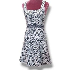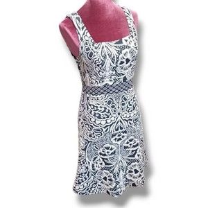 This beautiful ett twa Anthropologie Valery dress is perfect for any occasion. The square neckline and sleeveless design give it a classic and elegant look, while the fit and flare style creates a flattering silhouette. The dress is made with a jacquard fabric type that is both comfortable and durable, and comes in a black and white floral pattern that is perfect for any season.