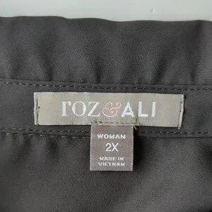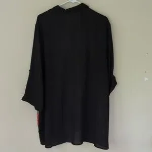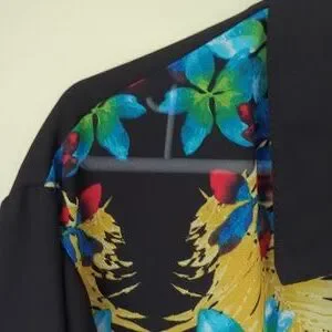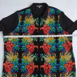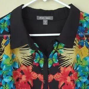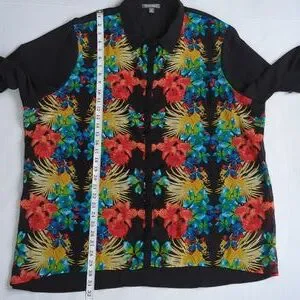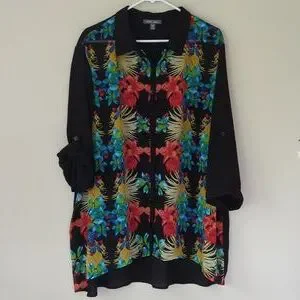 Roz & Ali Floral Sheer Button Down Tropical Blouse Woman 2X Black Blue