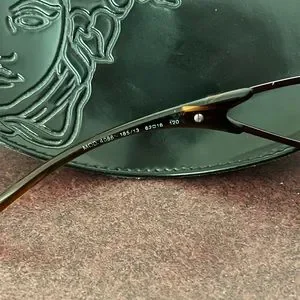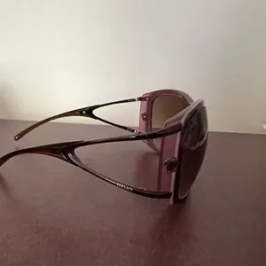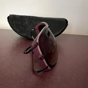 Authentic Versace Women’s Vintage Y2K Sunglasses. Gradient brown lenses in light violet frames with the Medusa logo on the sides. Comes with the soft Versace case