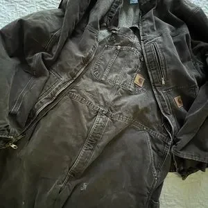 Original Vintage Carhart, heavy duty, durable, insulated overalls with matching jacket. 3x
