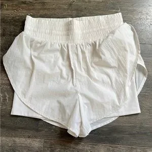 In very good condition. Size XS. Women’s All In Motion translucent tulip shorts 3.5”. High waisted. Draw string and small pocket internally. Color is light beige.