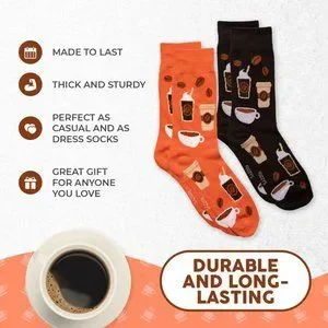 Coffee Expresso Mug Caffeine Roasted Beans Arabica Morning 2 Pairs Men's Socks