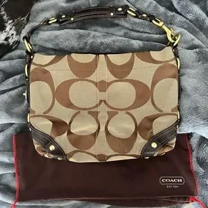 COACH Vintage Signature Canvas Carly Hobo Bag Shoulder Purse #K10619