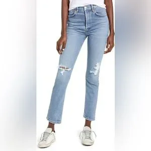 AGOLDE Riley Ripped Super High Waist Crop Straight Leg Jeans in Whiplash
