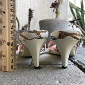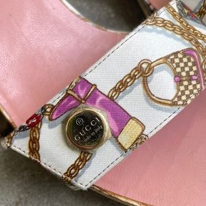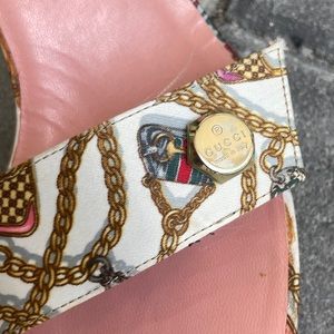 - pre-loved, some crumbling at heel tips, wear at soles, and glue melted at inner strap