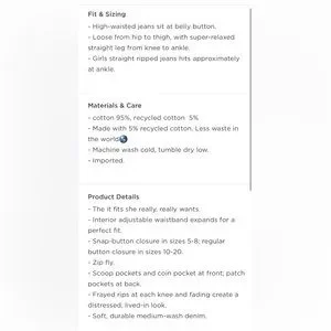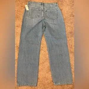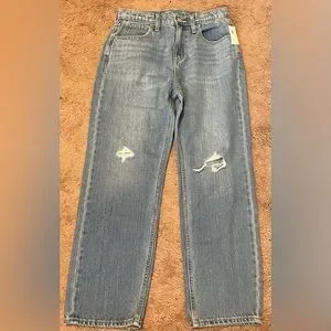 High-waisted Slouchy Straight Ripped Non-stretch Jeans for Girls, Size 14. Brand new with tags! Never worn. Button closure with zip fly. Medium wash from Old Navy.