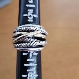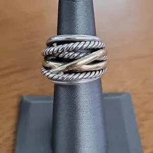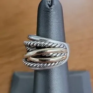 David Yurman Crossover Ring In Sterling Silver with 14k Yellow Gold