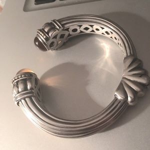 Steven Lagos Signature Caviar Citrine 925 Silver 18K Gold Petite Hinged Cuff Bracelet
