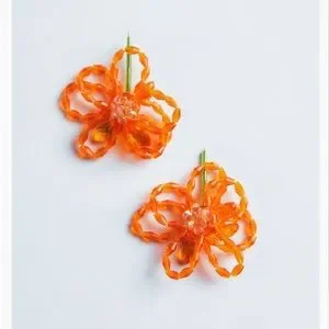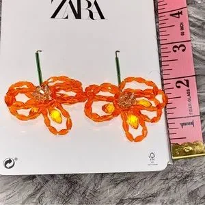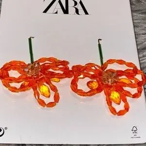 ZARA Floral Beaded Earrings in Orange