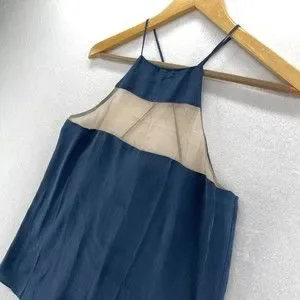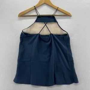 Cami NYC The High Top Cami Tank Top Size M Navy Blue Silk Cross Back Sheer Panel