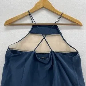 Cami NYC Womans Medium Tank Top The High Top Navy Blue Cross Back Silk Sheer Spaghetti Strap