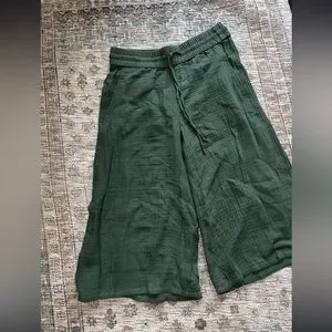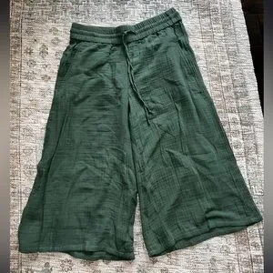 NWT Eileen Fisher Gauze Crop Cotton Culotte Pant Green