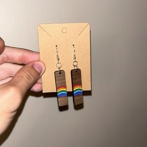 NWT Handmade Wooden Dangle Rainbow Styled Earrings