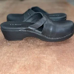 L.L.Bean Women’s Slip On Clogs Black US 7 EU 38 Like New! 2” Heel