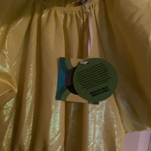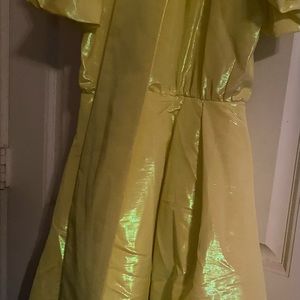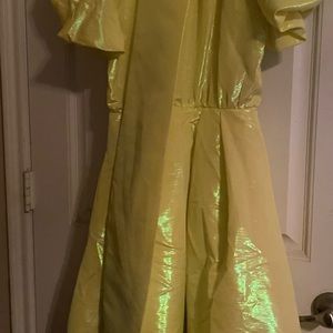 New Christopher John Rogers puffy dress. Dress with puffy sleeve & keyhole button closure in the back. Waist has a belt with puffy bottom. Neon Yellow