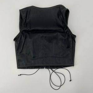 black Vegan Leather Cropped Tank Corset Lace Up Top Overstitching