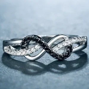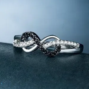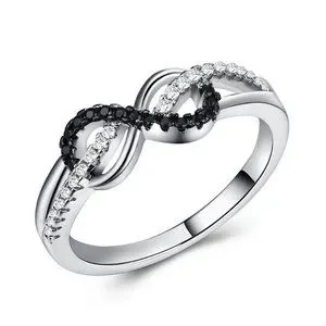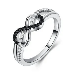 🍁 925 Silver Plated Exquisite Eternity Black White CZ Ring, GPMB1463-7