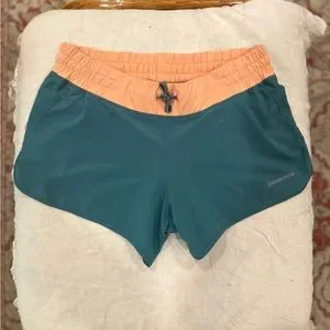 Size small Patagonia teal and orange 4” nine trails shorts. Super stretchy material with back pocket.