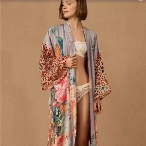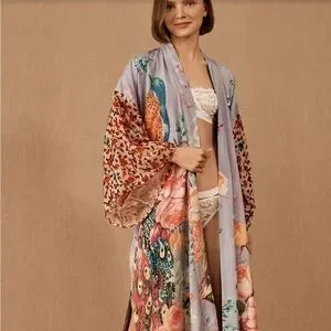 Just arrived, now available in this soft violet color. Lightweight, so comfortable. Perfect to glam up your home life, over jeans, as a swimsuit, cover-up, resort wear, etc. Slight transparency. Boho, kimono, robe, cover up, duster, bohemian. Shoulder 29 inch, breast 59 inch, length approximately 50 inch and sleeves are an extra 11 inch. One size fits all. Brand new item and unbranded. Let me know if you would like multiples for a bridal party or other event.